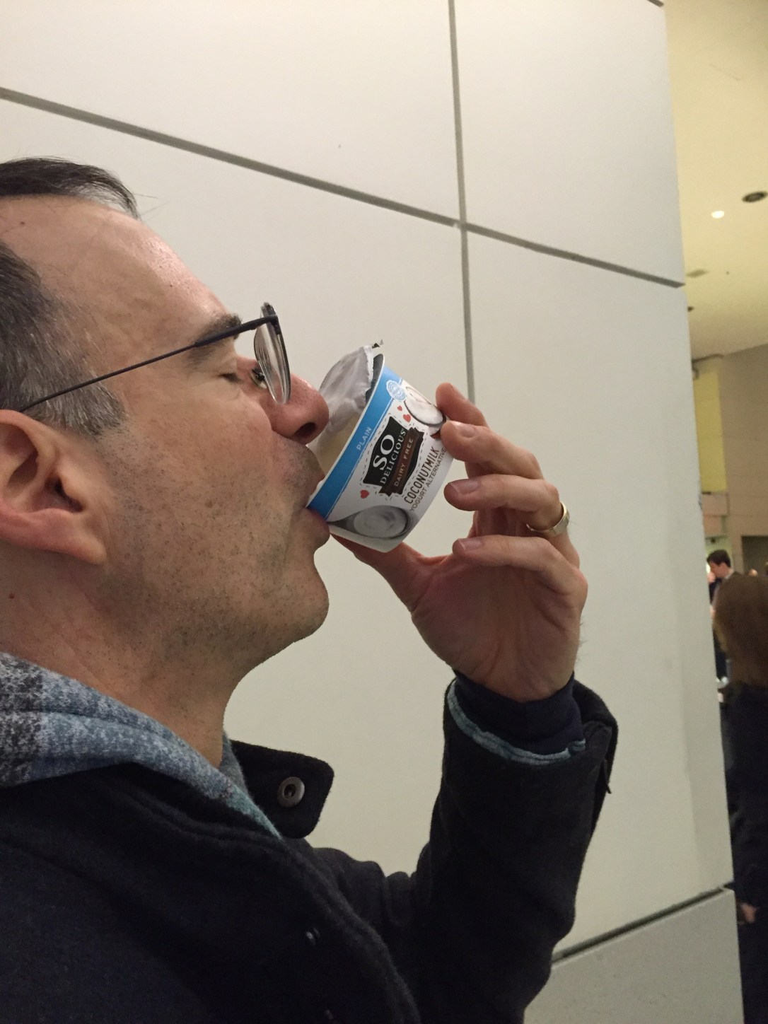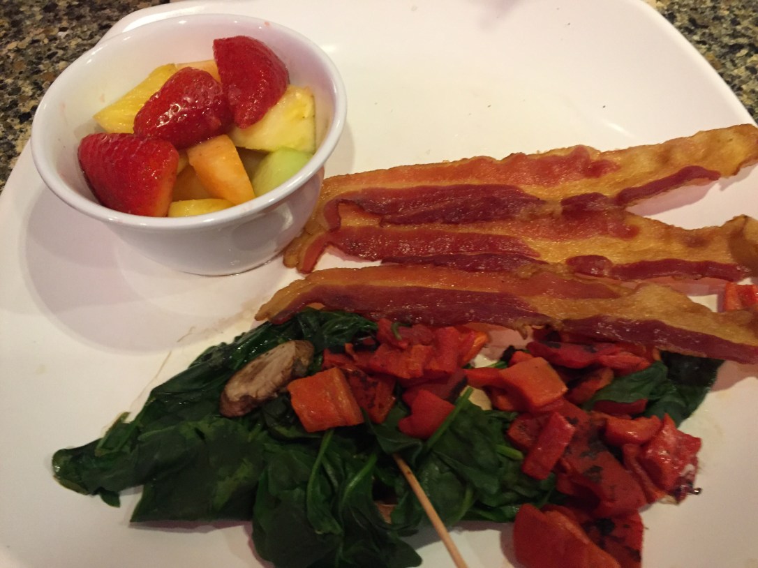 Two part breakfast in the BWI airport to sustain us on board; we bought extra bacon which tied us over …